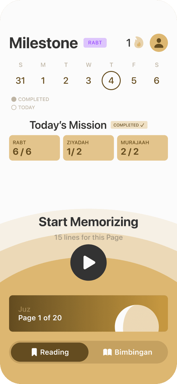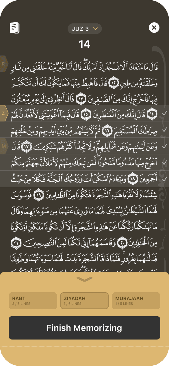 The memorization method for Al-Quran is designed to align with your specific readiness level for memorization, thus guaranteeing a customized and tailored learning experience that caters to your individual pace and preferences.